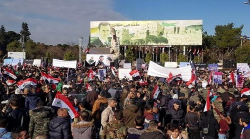 بالصور... تجمع حاشد بحلب تنديداً بجريمة اغتيال الفريق سليماني ورفاقه
