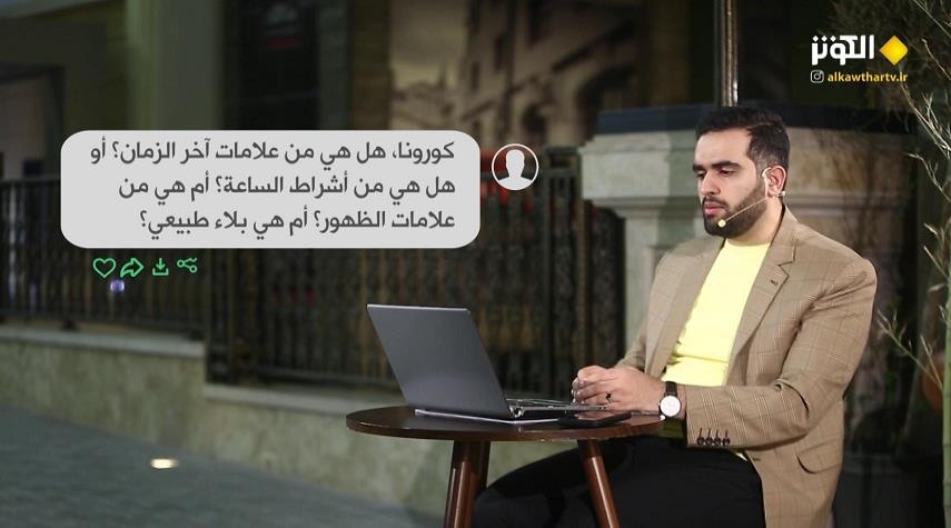 في برنامج اسئلتكم على قناة الكوثر الفضائية، تحدث سماحة السيد عيسى قاسم" حول (كورونا، هل هي من علامات آخر الزمان ؟ أو هل هي من أشراط الساعة ؟ أم هي من علامات الظهور ؟ أم هي بلاء طبيعي ؟) .