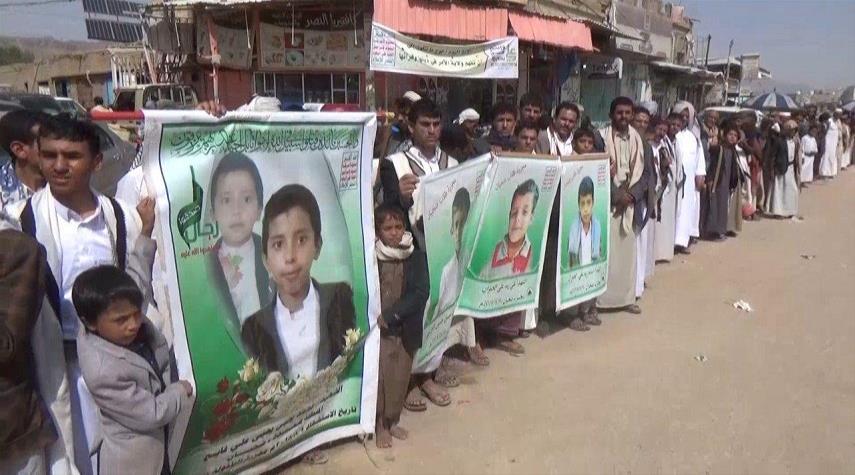اليمن-الكوثر: استنكر أبناء مدينة ضحيان في مديرية مجز في محافظة صعدة اليمنية، في وقفة بالذكرى الثانية على فاجعة قتل أبناءهم، شطب الأمم المتحدة قتلة طلاب ضحيان من قائمة العار.