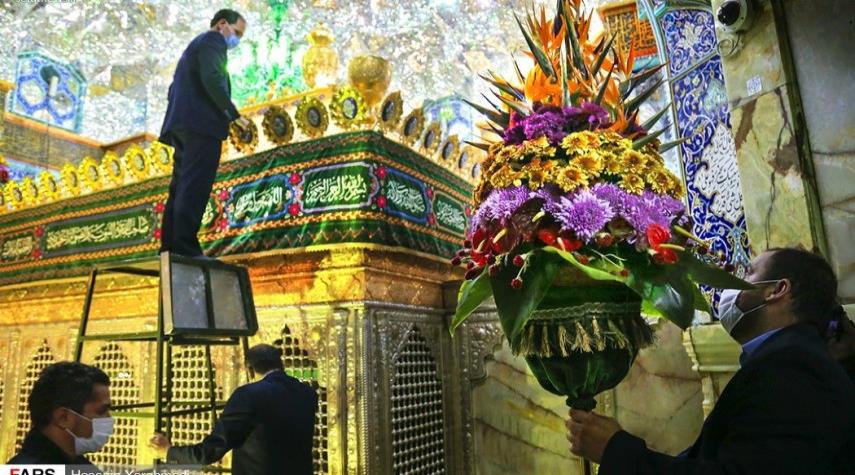 تزيين ضريح السيدة معصومة (ع) مع اقتراب ذكرى ولادتها المباركة