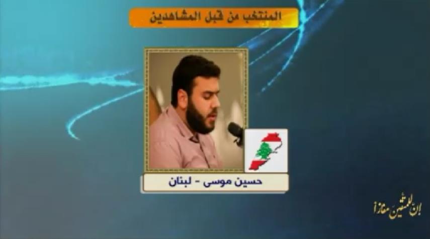 إن للمتقين مفازا - خاص الكوثر: حصل "حسين موسى" القارئ المشارك من لبنان في المرحلة الأولى من الدورة الثالثة عشرة من مسابقة قناة الكوثر في تلاوة القرآن على أعلى تصويت من قبل المشاهدين لينضم إلى القراء المتأهلين في المرحلة نصف النهائية من مسابقة "إن للمتقين مفازا".