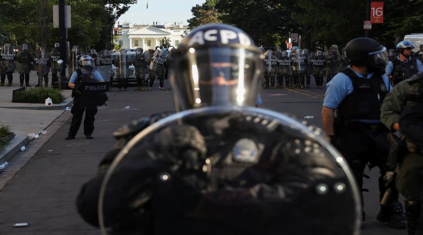 الأميركيتان _ الكوثر: أغلقت قوات أمن فدرالية ومحلية شارعا موازيا للبيت الأبيض كان قد شهد مظاهرات على مدار أسبوع، وسط تواصل للاحتجاجات في عموم الولايات المتحدة وتصاعد للانتقادات الموجهة للرئيس دونالد ترامب.