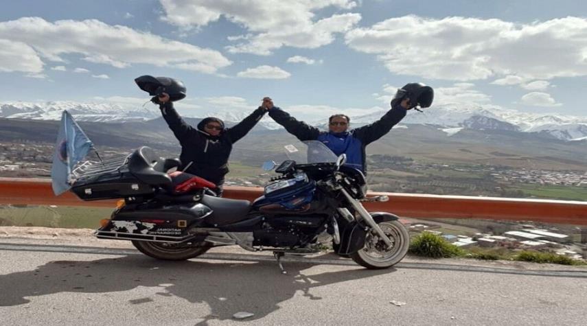 ايران-الكوثر: يسافر كيانوش صارمي و وزوجته بواسطة الدراجة النارية الى مختلف انحاء العالم تحت شعار " صحة الفرد,صحة المجتمع " حاملين معهما رسالة السلام الايرانية الى جميع شعوب العالم .