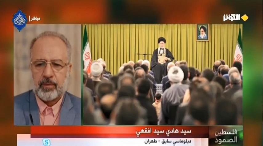 تحدث الدبلوماسي السابق السيد هادي سيد افقهي من طهران امس الاربعاء خلال مشاركته في برنامج فلسطين الصمود عن"إيران.. تأكيد على نصرة غزة ومقاطعة الأعداء"