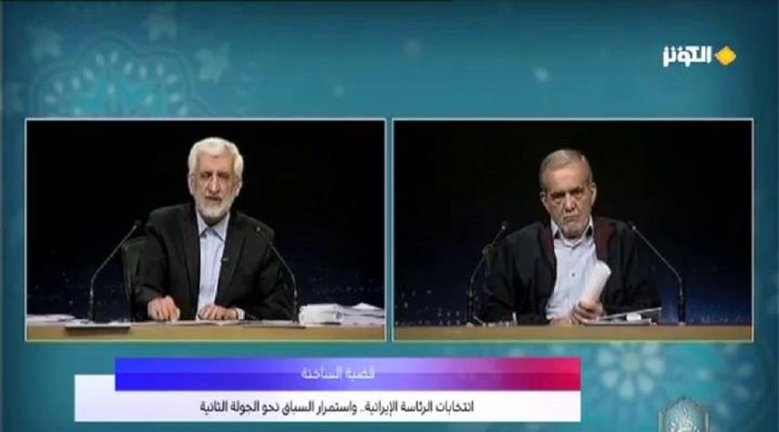 حول سياسة الحكومة الداخلية والخارجية بالفترة الرئاسية المقبلة، المناظرة التلفزيونية الاولى بين المرشحين بالجولة الثانية من الانتخابات الرئاسية الايرانية الرابعة العشرة المقررة نهار الجمعة المقبل، مسعود بزشكيان وسعيد جليلي تمحورت حول موضوعي الثقافة والسياسة وتناول فيها المرشحان اراءهم من ثلاثة عشرة قضية وسؤالا يتعلق بهذه القضايا.