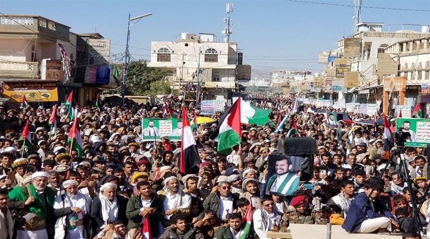تظاهرات حاشدة في صعدة وريمة ومأرب اليمنية دعماً لغزة