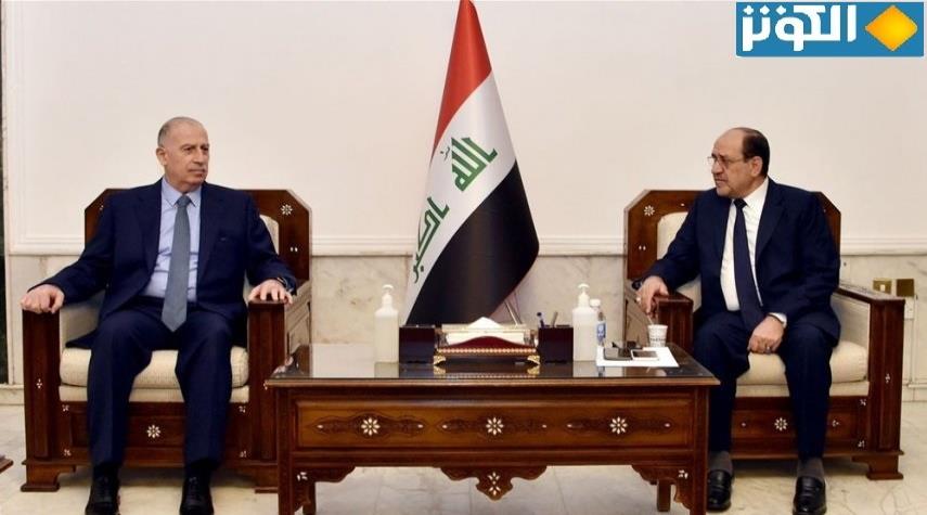 العراق_الكوثر: استقبل رئيس ائتلاف دولة القانون في العراق نوري المالكي بمكتبه، اليوم الثلاثاء، رئيس جبهة الإنقاذ والتنمية أسامة النجيفي .