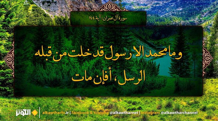 وما محمد الا رسول قد خلت من قبله الرسل، أفإن مات أو قُتل انقلبتم على أعقابكم ومن ينقلب على عقبيه فلن يضر الله شيئاً وسيجزي الله الشاكرين)، آل عمران : آية ١٤٤