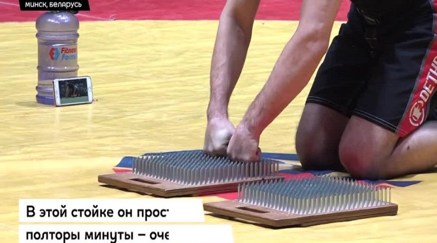 روسي يسجل الرقم القياسي في مسابقة الوقوف على المسامير (شاهد الفيديو)