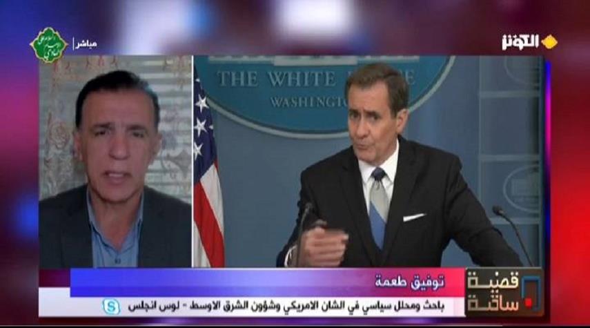 تحدث الباحث والمحلل السياسي في الشان الامريكي توفيق طعمة امس السبت خلال مشاركته في برنامج قضية ساخنة عن "العدوان على غزة.. وحقيقة الخلافات بين واشنطن وتل أبيب"