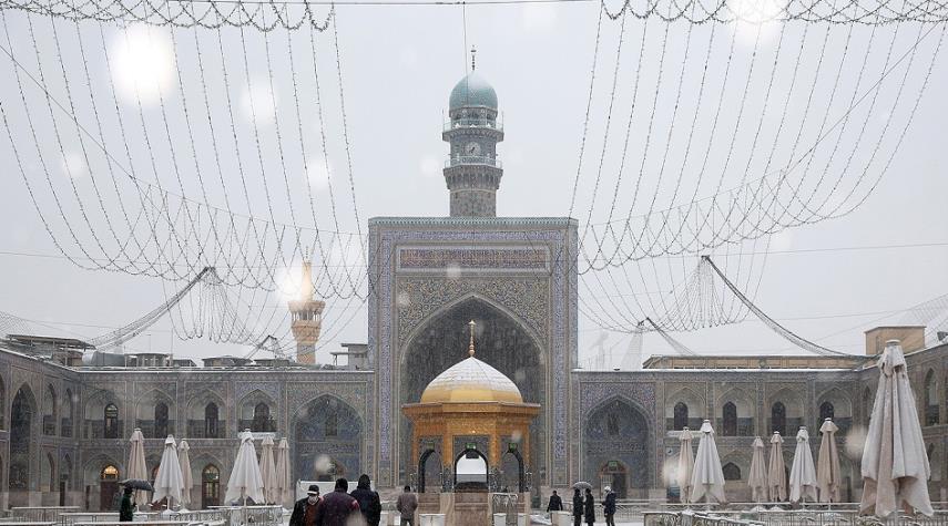 أجواء الحرم الرضوي الطاهر في يوم ثلجي