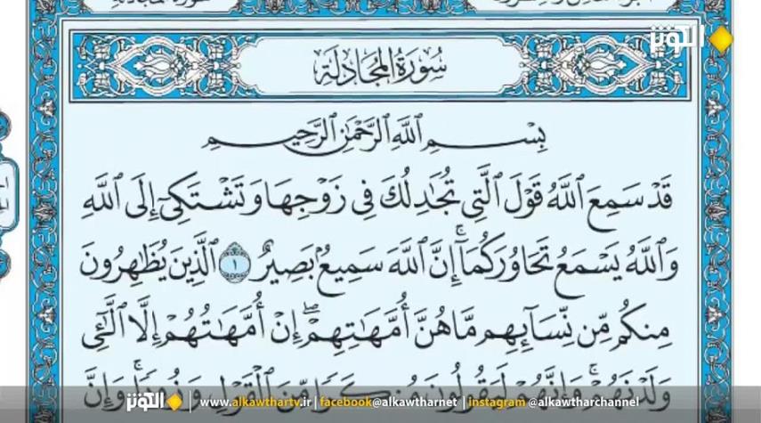 القرآن الكريم_الكوثر: سورة المجادلة - سورة 58 - عدد آياتها 22