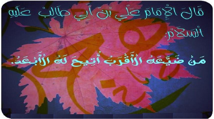 نهج البلاغة-الكوثر: قال أمير المؤمنين علي (عليه السلام) من حِكَمِهِ في نهج البلاغة : ((مَنْ ضَيعهُ الأقربُ أتيحَ لهُ الأبعدُ)).