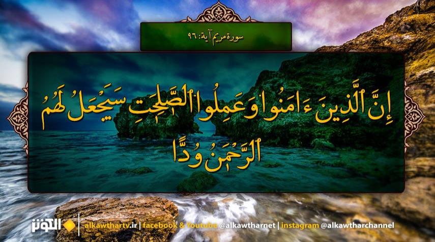 إِنَّ ٱلَّذِينَ ءَامَنُوا۟ وَعَمِلُوا۟ ٱلصَّٰلِحَٰتِ سَيَجْعَلُ لَهُمُ ٱلرَّحْمَٰنُ وُدًّا... (سورة مريم المباركة، آية: 96)