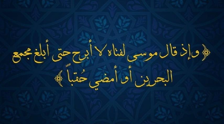 (وَإِذ قَالَ مُوسَى لِفَتَاهُ لَا أَبرَحُ حَتَّى أَبلُغَ مَجمَعَ البَحرَينِ أَو أَمضِيَ حُقُباً ).. سورة الكهف، آية: 60