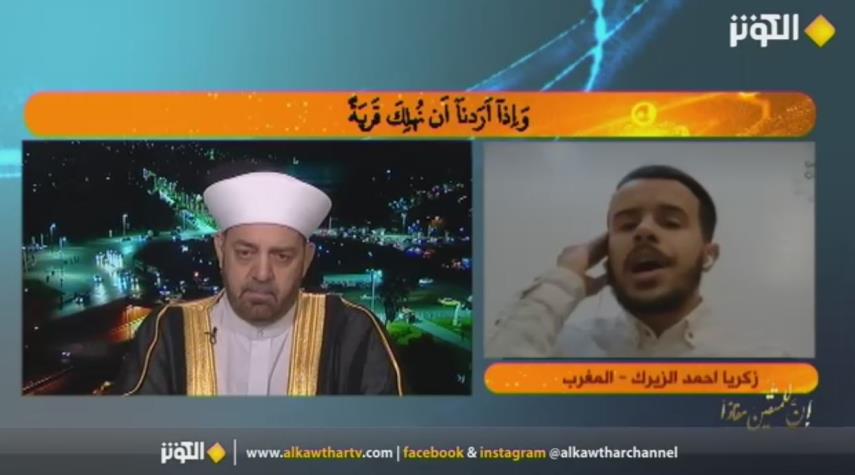 إن للمتقين مفازا– الكوثر: تلاوة قرآنية من المتسابق المشارك من المغرب " زکریا أحمد " حسب القرعة من سورة الإسراء المبارکة في الليلة الثامنة عشرة من مسابقة "إن للمتقين مفازا" الدورة الرابعة عشرة لشهر رمضان 2021.