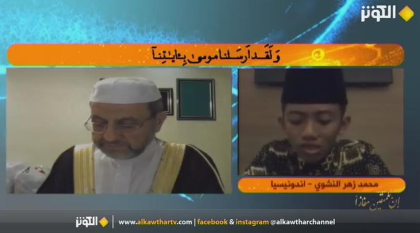 إن للمتقين مفازا– الكوثر: تلاوة قرآنية من المتسابق المشارك من أندونیسیا " محمد زهر النشوي " حسب القرعة من سورة إبراهیم المبارکة في الليلة الثامنة عشرة من مسابقة "إن للمتقين مفازا" الدورة الرابعة عشرة لشهر رمضان 2021.