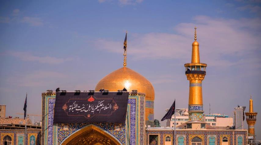 تزامناً مع بداية العشرة الأخيرة من شهر صفر الخير وبالتزامن مع ذكرى رحيل الرسول الأعظم (ص) وذكرى استشهاد الإمام الحسن المجتبي (ع) والإمام الرضا (ع)، تم رفع اللافتات الخاصة بالعزاء في أرجاء الحرم الرضوي الطاهر.