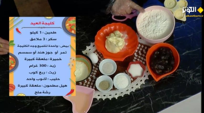 فقرة الطبخ مع الشيف عواطف حيدري في الحلقة الاخيرة من ايام شهر رمضان المبارك التى تطهو لنا نوع من الحلويات المسمى بالكلیجة او المعمول .