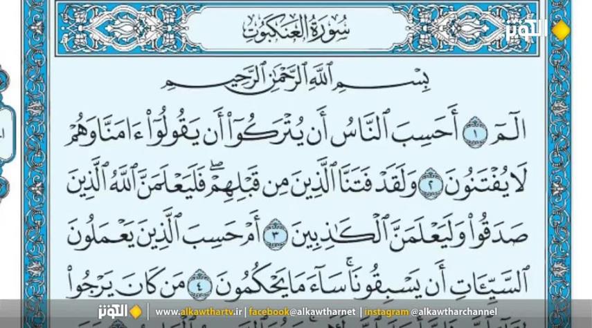 القرآن الكريم _الكوثر: سورة العنكبوت - سورة 29 - عدد آياتها 69