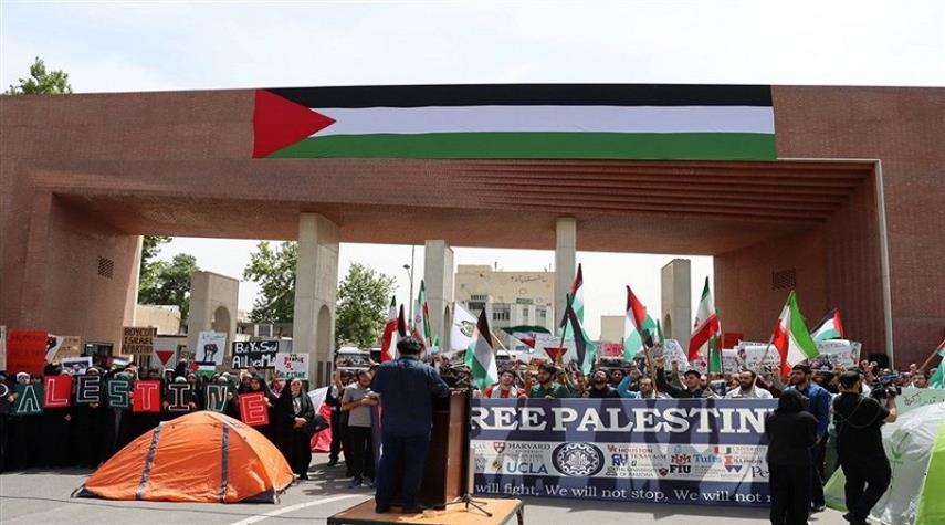 أقيم تجمع طلابي في جامعة شريف بطهران، اليوم الثلاثاء، تضامنا مع الطلاب الأمريكيين والأوروبيين الداعمين لفلسطين.