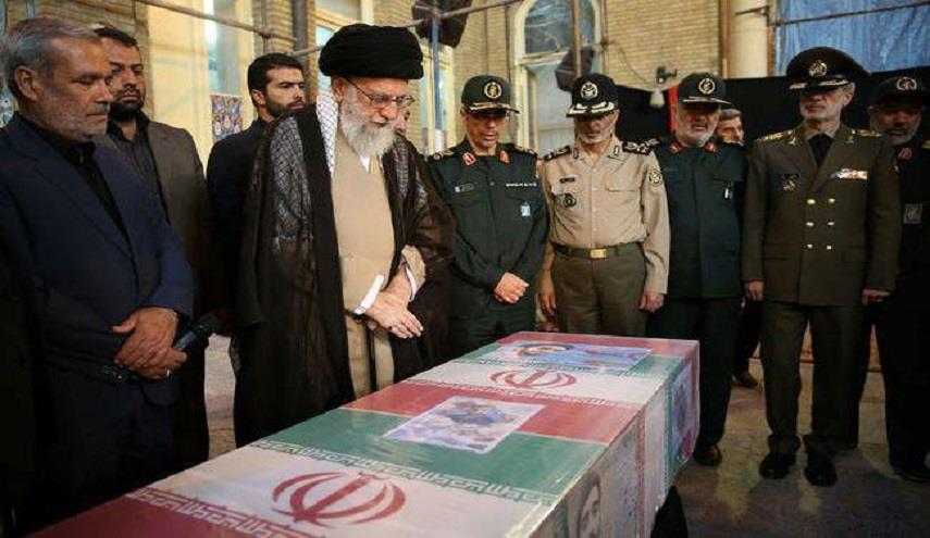 قائد الثورة الاسلامية يلقي النظرة الاخيرة على جثمان الشهيد حججي