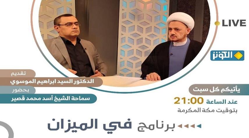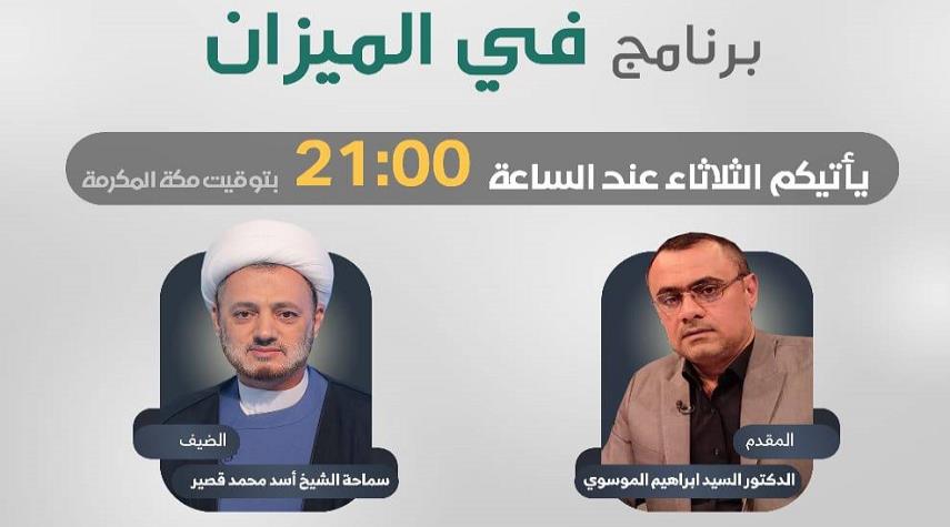محور حلقة هذا المساء من برنامج في الميزان عن "الروايات الموضوعة في تحريف آيات فضائل آل الرسول (ص)"، مع الخبير الدائم للبرنامج الاستاذ الحوزوي "سماحة الشيخ اسد محمد قصير".