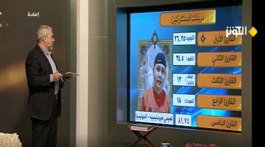 إعلان عن أسماء القرّاء الفائزين بالمراتب الخمس الأولى من الذين شاركوا في مسابقة إن للمتقين مفازا، مساء أمس.