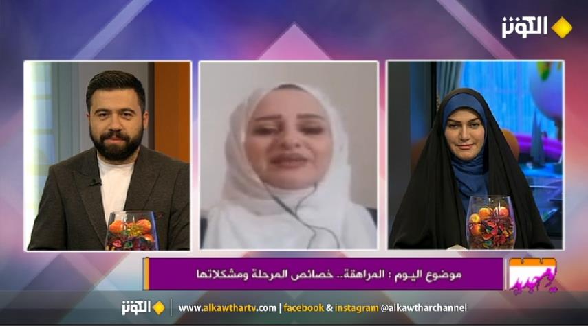 خاص الكوثر: برنامج يوم جديد يتناول بالدراسة أهم الأحداث الاجتماعية والفكرية والثقافية، حيث تطرق البرنامج في هذه الحلقة الى موضوع : " المراهقة، خصائص المرحلة ومشكلاتها " في حوار مع الدكتورة " سلوى شعبان " إختصاصية أسرية من دمشق.