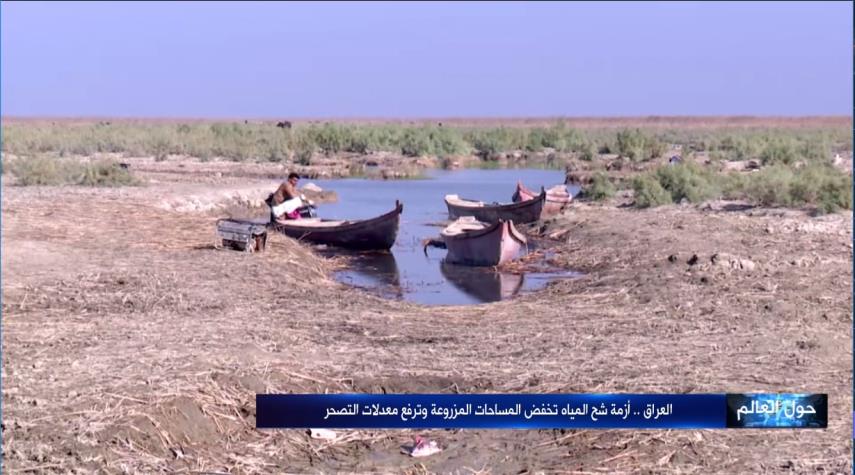 حول العالم - الکوثر: ازمة شح المیاه لاتزال تلقی بظلالها علی الواقع الزراعی بالعراق مع اتساع نسبة الاراضی المحددة بالتصحر نتیجة تقلص المساحات المزروعة.