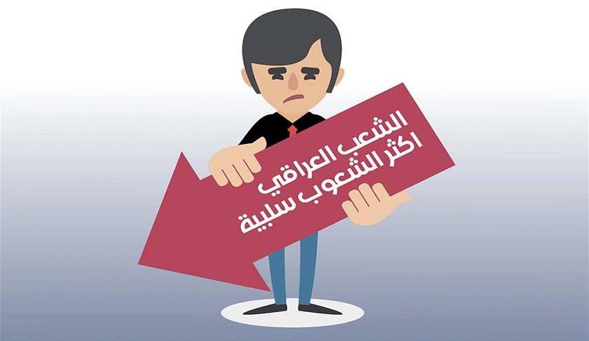 احتل العراق المرتبة الاولى عالميا باكثر الشعوب سلبية في العالم نتيجة تردي الاوضاع السياسية والامنية والاقتصادية والاجتماعية منذ العام 2003