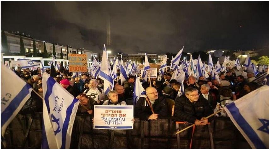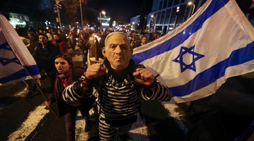 تظاهر آلاف المستوطنين الصهاينة في "تل أبيب" رفضًا لحكومة بنيامين نتنياهو المتطرفة والتي تعتبر الأكثر يمينية وتطرفاً في تاريخ الكيان الصهيوني.