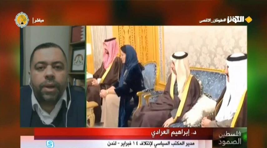 تحدث مدير المكتب السياسي لائتلاف 14 فبراير الدكتور ابراهيم العرادي أمس الخميس خلال مشاركته في برنامج فلسطين الصمود عن "السعودية وشروط التطبيع مع الكيان الصهيوني".