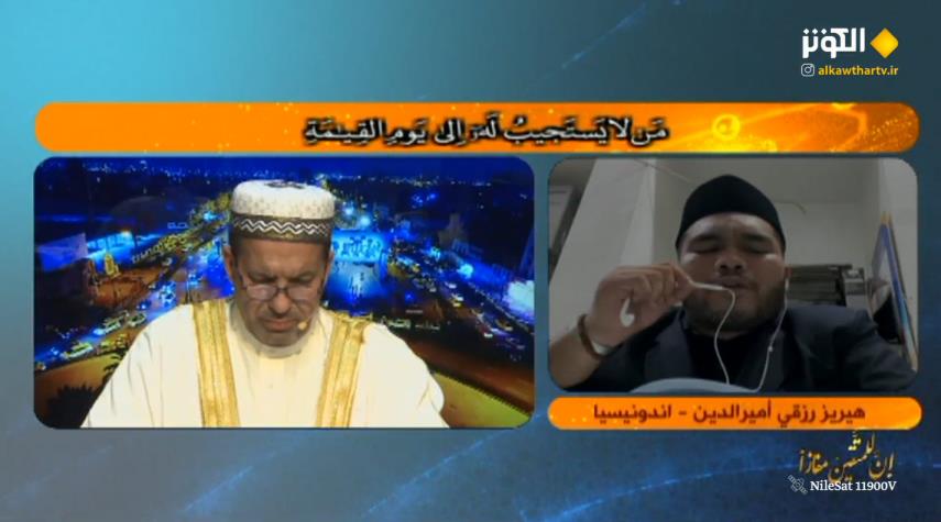 تلاوة قرآنية من المتسابق المشارك من أندونيسيا "هيريز رزقي أميرالدين " حسب القرعة من سورة الأحقاف المباركة في الليلة الأولى من مسابقة "إن للمتقين مفازا" الدورة السادسة عشرة لشهر رمضان 1444 2023.
