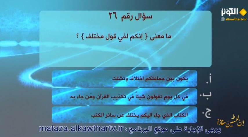 المسابقة القرآنية السادسة والعشرون من سلسلة الاسئلة القرآنية الخاصة بالمشاهدين ضمن المسابقة القرآنية ان للمتقين مفازا لعام 2023 ممن عمره 12 سنة فما فوق.