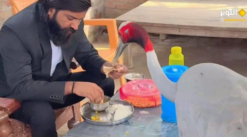 اصيح مزارع هندي نجما على وسائل التواصل الاجتماعي بسبب علاقته الودية مع طائر ساروس