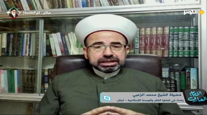 تحدث الباحث في قضايا الفكر والوحدة الاسلامية الشيخ محمد الزعبي خلال مشاركته في برنامج الامام العارف الخاص بمناسبة الذكرى ال35 لرحيل الامام الخيمني قدس سره" عن شخصية الامام الخميني الفريدة