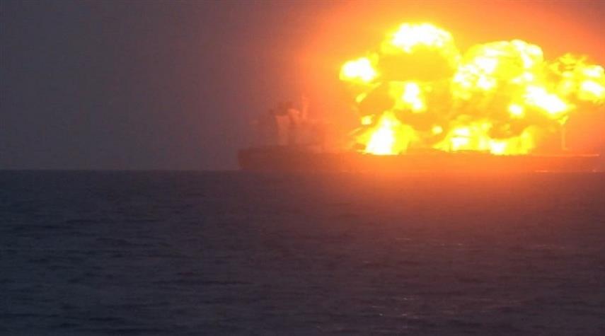 مشاهد لإحراق البحرية اليمنية السفينة اليونانية "SOUNION" في البحر الأحمر