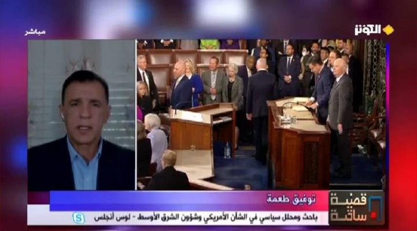 تحدث الباحث والمحلل السياسي في الشان الامريكي وشؤون غرب آسيا توفيق طعمة امس الخميس خلال مشاركته في برنامج قضية ساخنة عن "زيارة نتنياهو لواشنطن.. تراكم الفشل السياسي"
