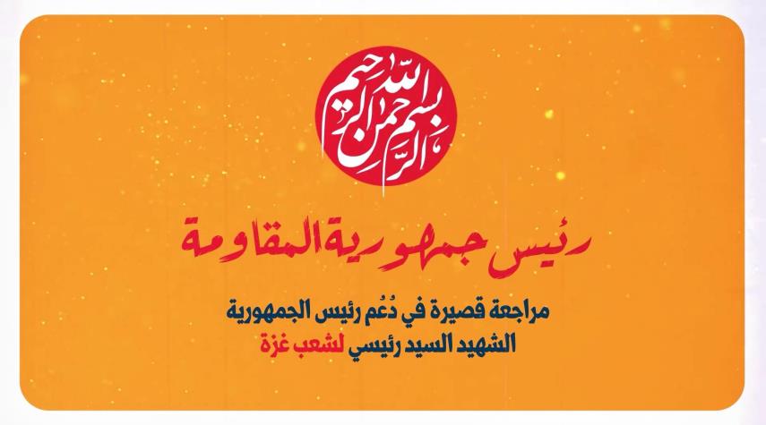 كليب مميز تحت عنوان " رئيس جمهورية المقاومة" يتضمن عدد من المواقف و الجهود التي بذلها الرئيس الشهيد " إبراهيم رئيسي " في دعمه ومساندته للشعب المظلوم في غزة العزة .