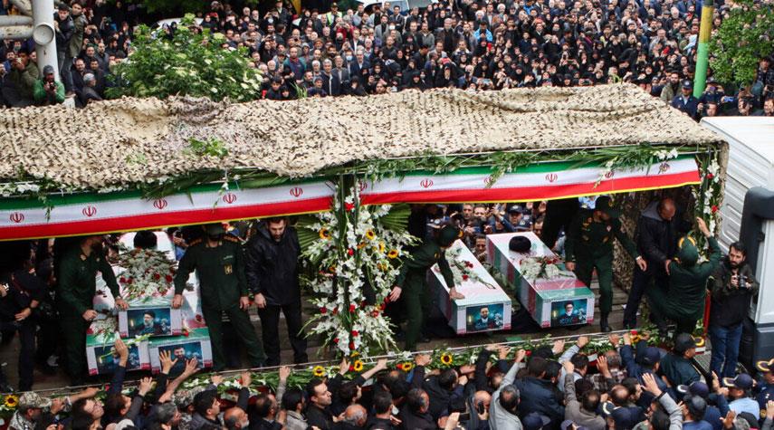 مراسم تشييع جثمان الرئيس الإيراني آية الله ابراهيم رئيسي ووزير الخارجية حسين أمير عبداللهيان ورفاقهما في تبريز.