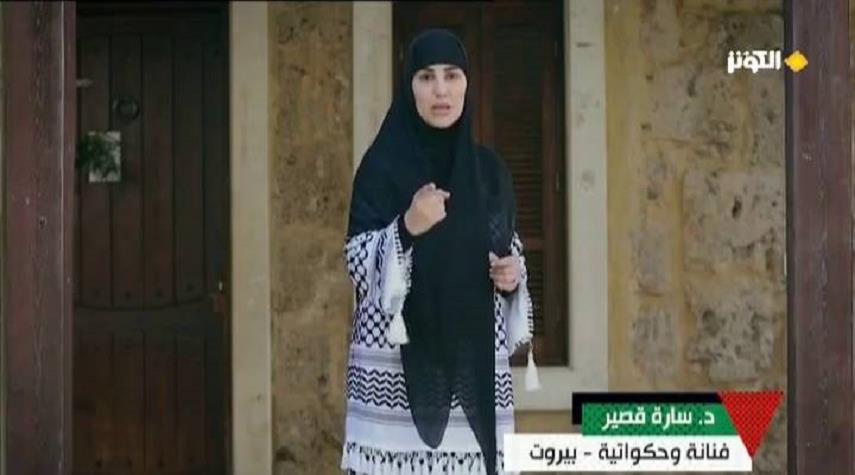 روت الحكواتية الدكتورة سارة قصير خلال مشاركتها في برنامج خلية حب عن " قصة الطفلة جود النازحة من شمال غزة التي تتشهد مع كل قصف اسرائيلي"