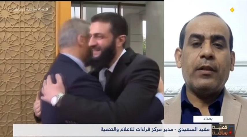 تحدث مدير مركز قراءات للاعلام والتنمية مفيد السعيدي من العراق امس الاربعاء خلال مشاركته في برنامج قضية ساخنة عن"سوريا وسلطتها الجديدة.. ودلالات الحراك الدبلوماسي المكثف"