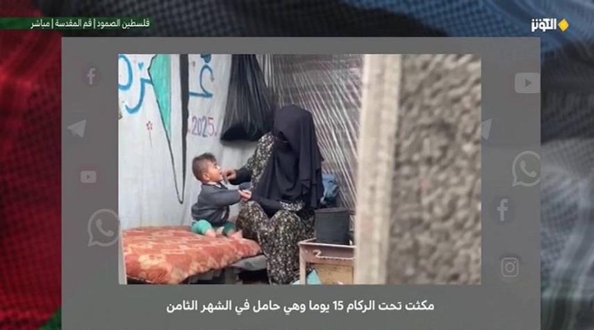 مكثت تحت الركام 15 يوماً وهي حامل في الشهر الثامن ، الجريحة قمر مهاني من غزة تروي قصتها تحت ركام 9 طوابق .