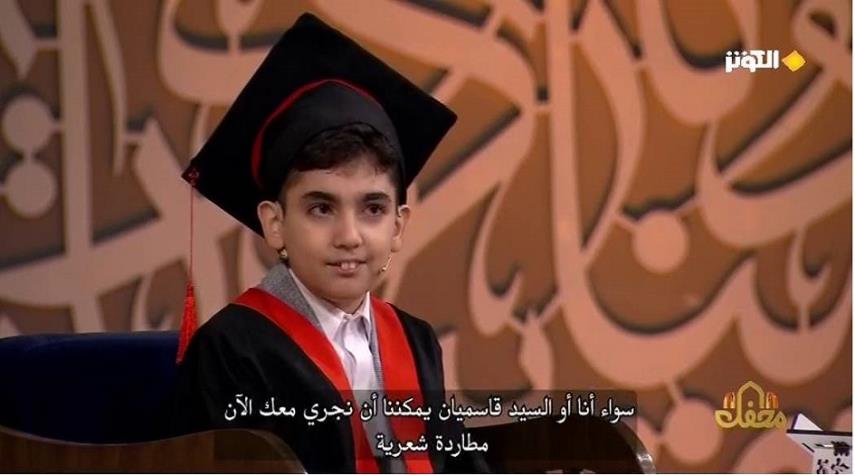 قام حكام برنامج "محفل " بالتنافس مع الطفل "محمد طاها حاجي محمدي "ذو11 عاماً بلعبة المطاردة الشعرية في الشعر العربي والفارسي .